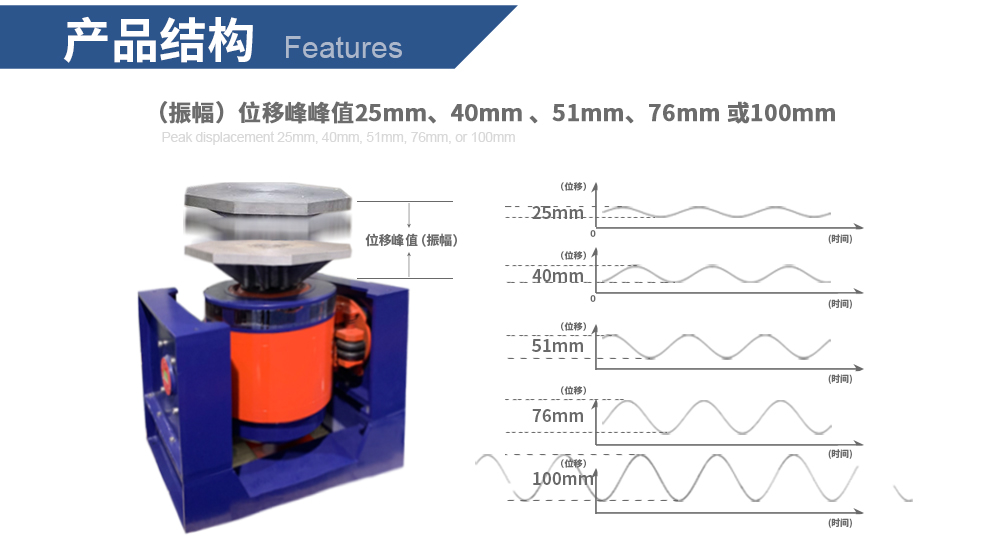 ●隨機與正弦激振力1:1                                          ●位移峰峰值最大可達100mm